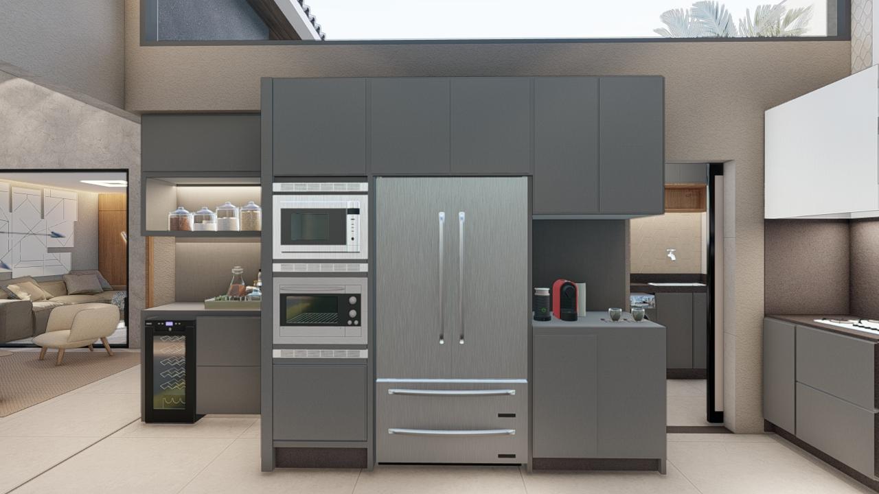 Essa casa com 3 suítes tem uma cozinha linda planejada, um design surpreendente no Condomínio Tamboré