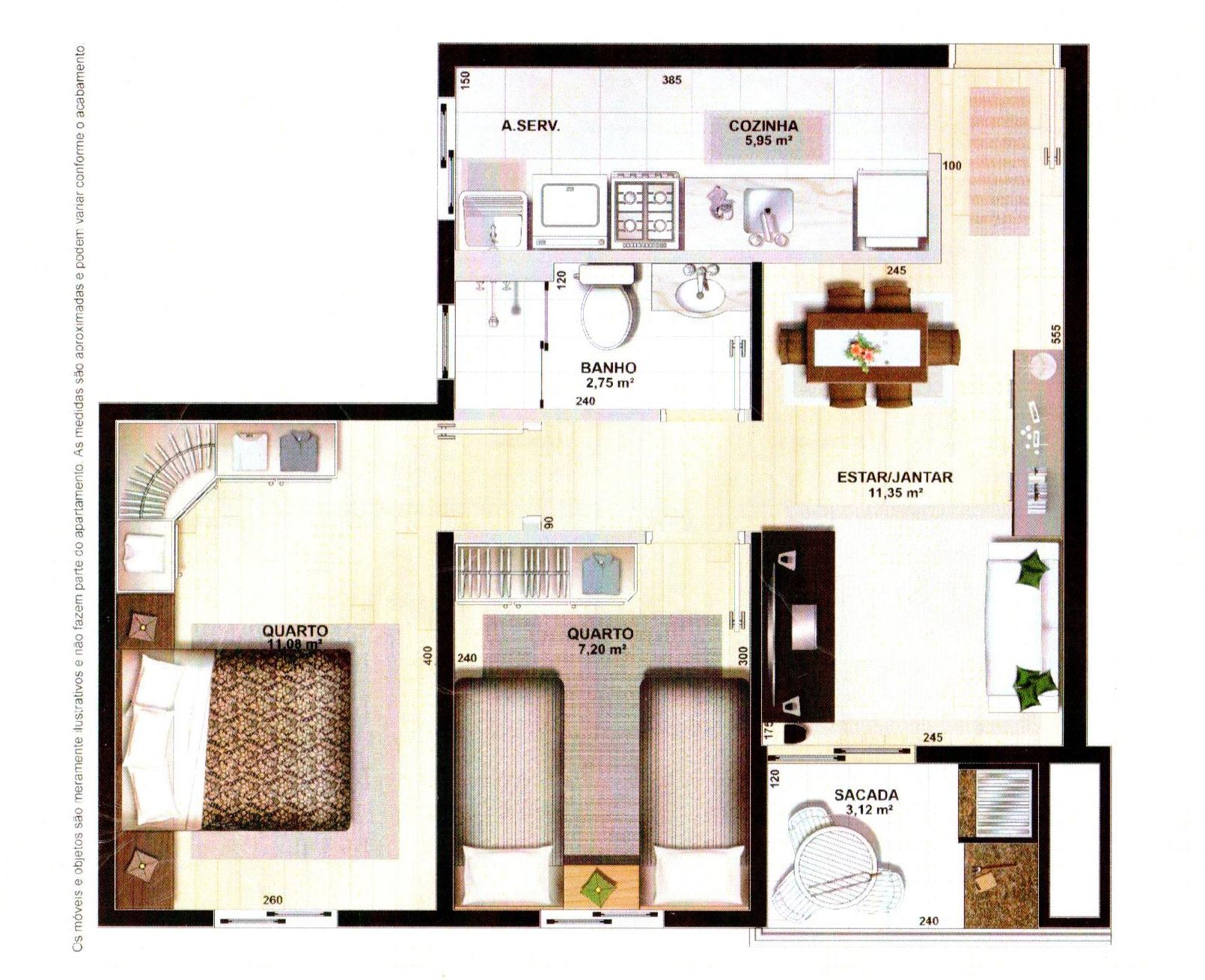 - Área Útil: 49m² Área Total : 55m²